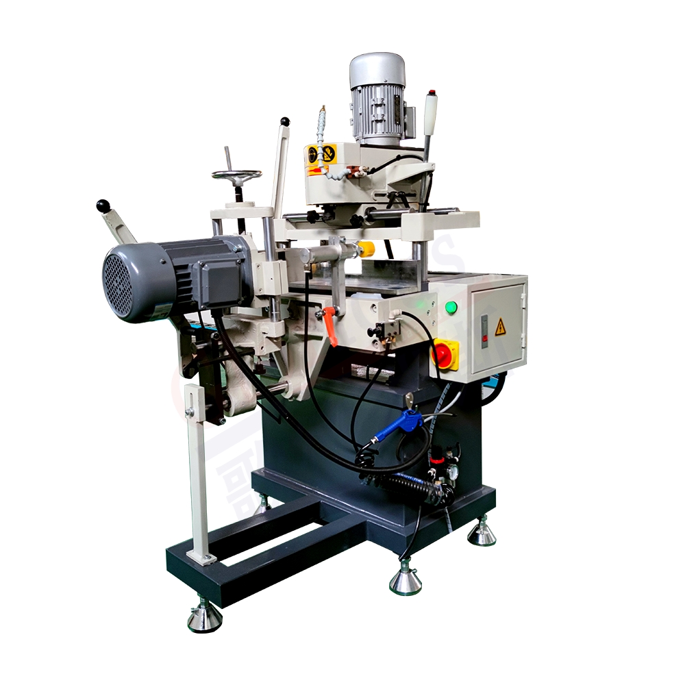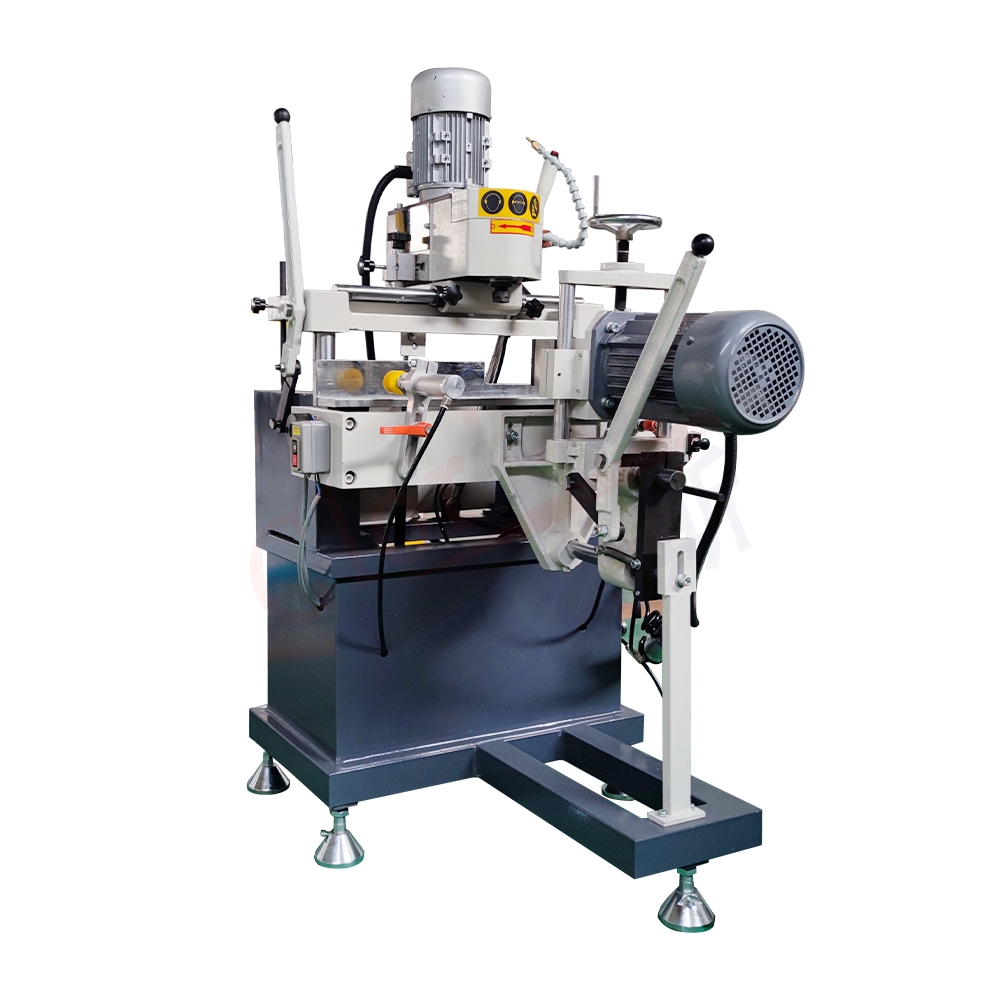 本機結構緊湊、體積小,型材夾緊采用氣壓傳動,仿形靠板更換簡單,適用范圍廣,操作簡單安全。