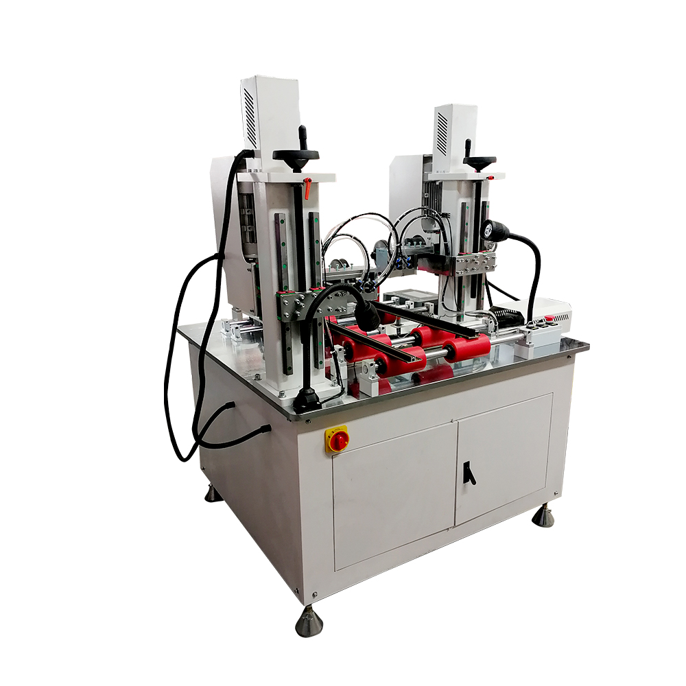 開齒機是生產(chǎn)隔熱鋁型材的專用設(shè)備,主要是將鋁型材上穿隔熱條或塑料異型材的槽口上開齒和打毛,起到加大型材的橫向剪切力的作用。工作原理是將刀頭壓入型材槽口內(nèi),并利用刀頭的轉(zhuǎn)動來牽引型材,在型材的內(nèi)腔上滾壓上齒花。