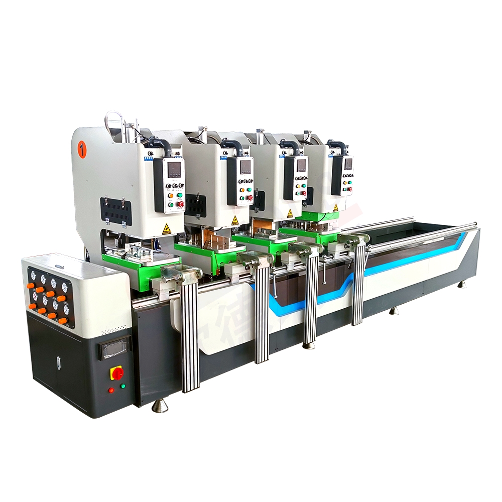 本機(jī)器是焊接塑料門窗的專用設(shè)備,它具有1、2、3、4共四個(gè)機(jī)頭。四個(gè)機(jī)頭可聯(lián)合動(dòng)作,也可單獨(dú)動(dòng)作。是彩色塑料門窗生產(chǎn)企業(yè)必備的設(shè)備,該設(shè)備可完成市面上據(jù)大部分塑鋼門窗樣式的焊接工序。可單點(diǎn)、兩點(diǎn)、三點(diǎn)、四點(diǎn)任意組合進(jìn)行焊接。